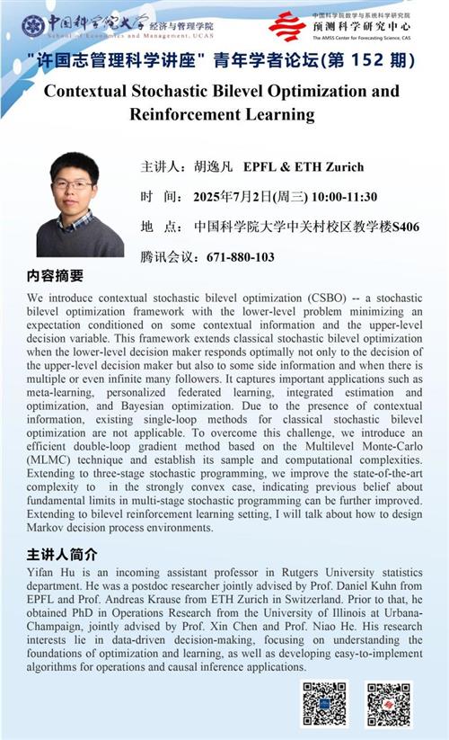 • 统计与数据科学系列讲座 时间: 2025-12-29 16:30:00~18:00:00 中关村校区教学楼S406 王天栋