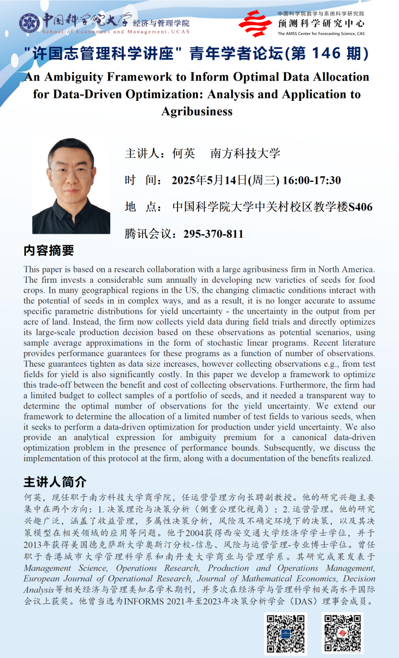 地点:中关村校区教学楼S406 腾讯会议:295-370-811主讲人:何英联系人:经管学院联系方式:01082680913开始时间:2025-05-14 16:00:00结束时间:2025-05-14 17:30:00内容:
