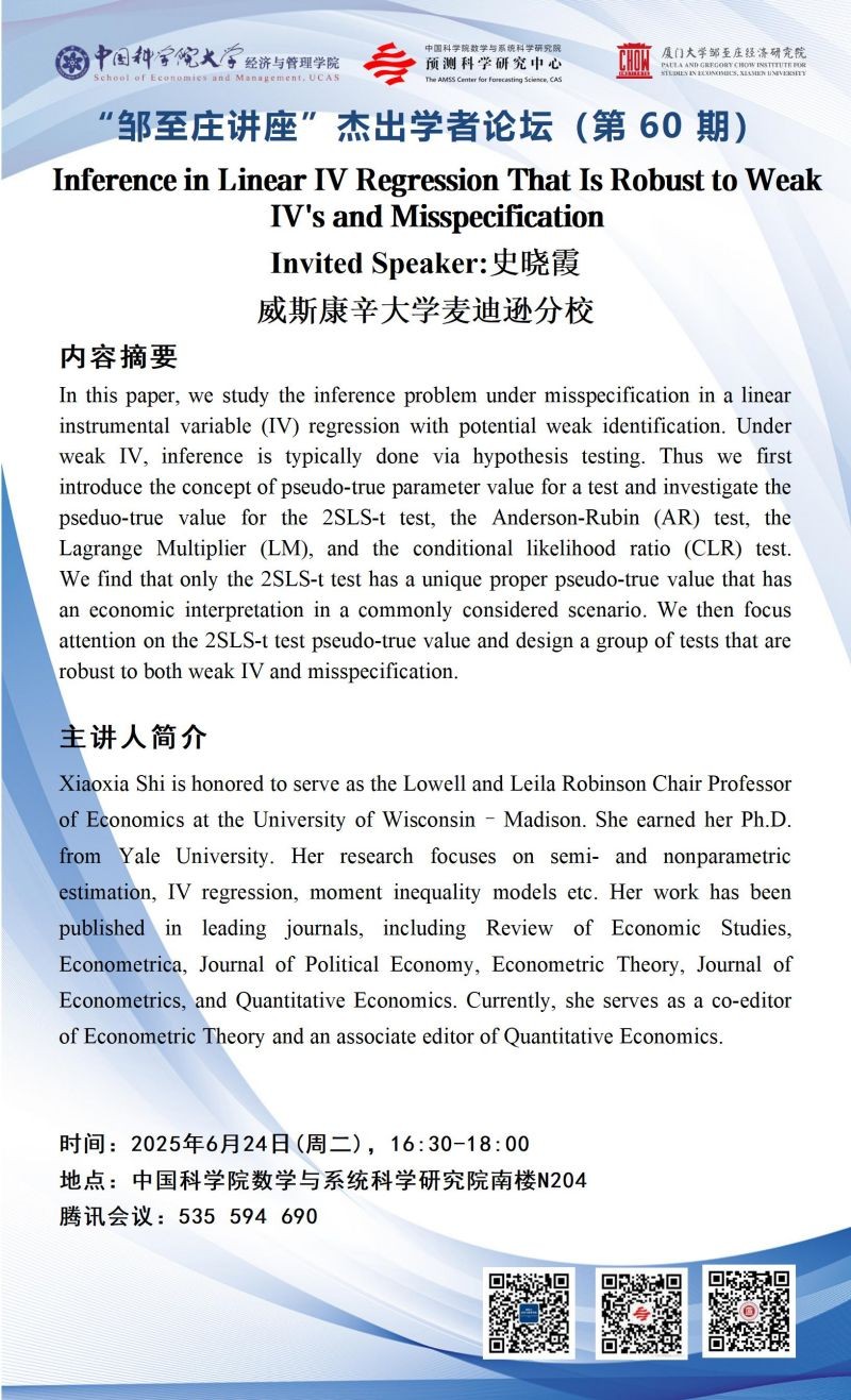 地点:中国科学院数学与系统科学研究院南楼N204 腾讯会议:535 594 690主讲人:史晓霞联系人:经管学院联系方式:01082680913开始时间:2025-06-24 16:30:00结束时间:2025-06-24 18:00:00内容:
