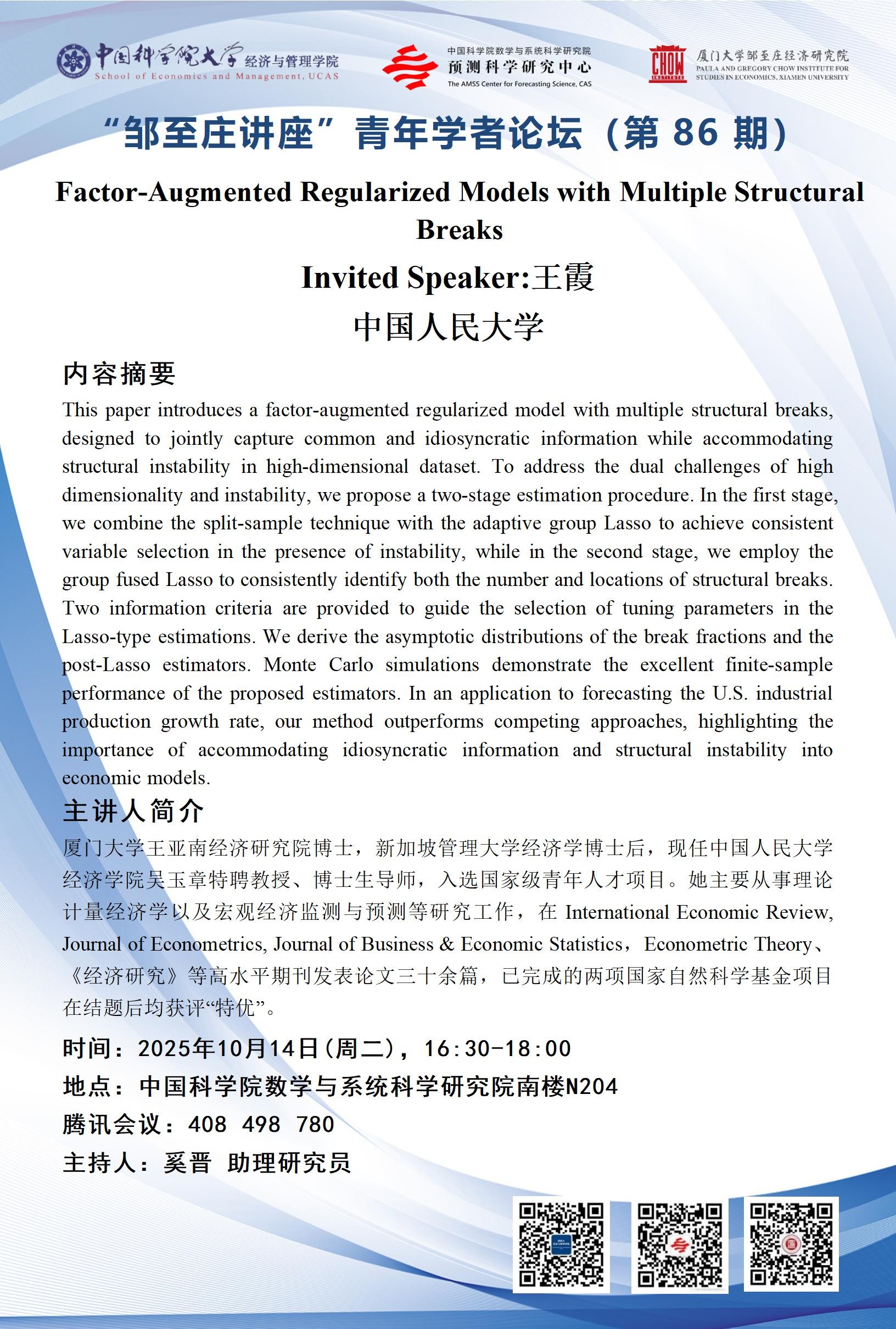地点:中国科学院数学与系统科学研究院南楼N204 腾讯会议:408 498 780主讲人:王霞联系人:经管学院联系方式:01082680913开始时间:2025-10-14 16:30:00结束时间:2025-10-14 18:00:00内容:
